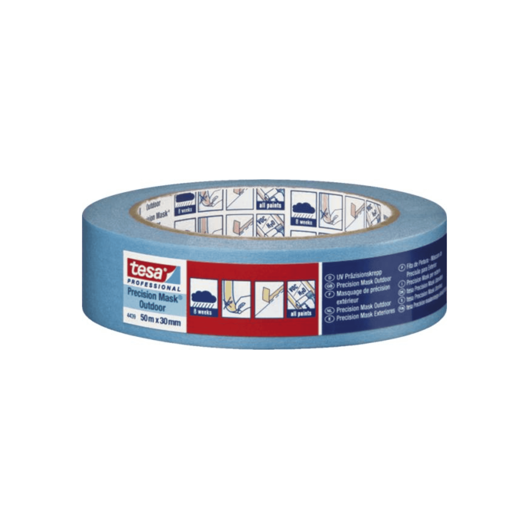 The Nastro tesa masck este. blu è un nastro per mascheratura progettato per lavorazioni in cui serve una delimitazione pulita e controllata delle superfici da proteggere. Realizzato con supporto in carta liscia robusta ed extra fine e massa adesiva in acrilico, è indicato per interventi di verniciatura e finitura in cui si richiedono bordi di pittura netti e precisi, anche in contesti esposti a condizioni ambientali tipiche degli esterni.